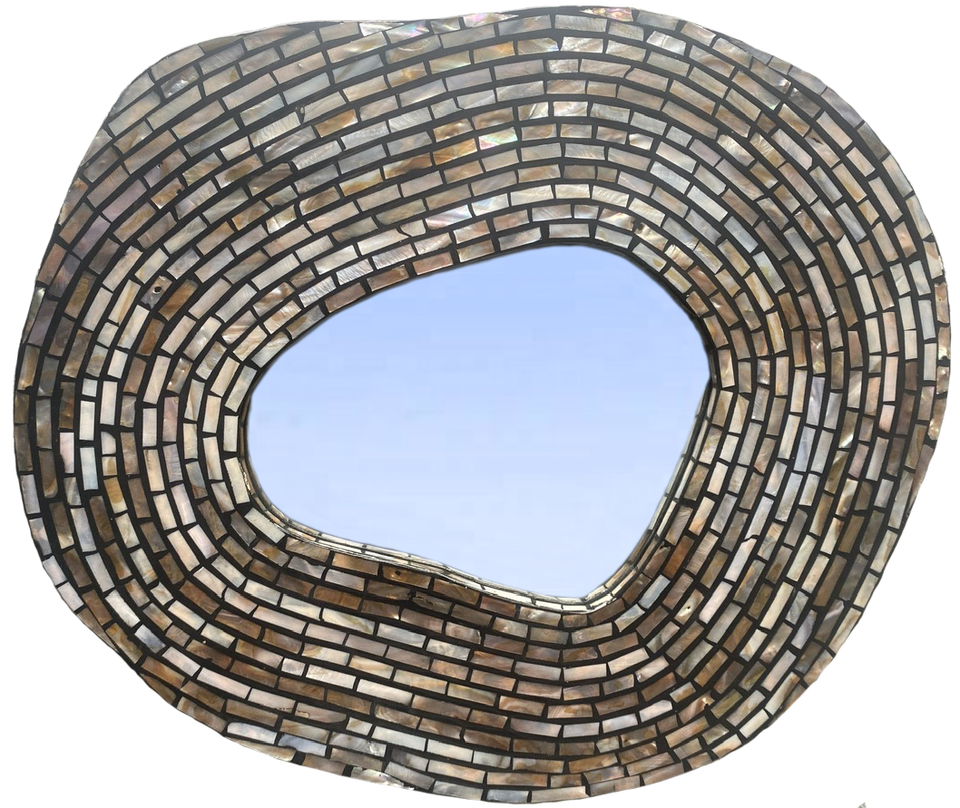 Luxury Lacquer MOP Mosaic Wall Mirror Round Hanging Mirror for Living Room Hallway Bathroom Vanity