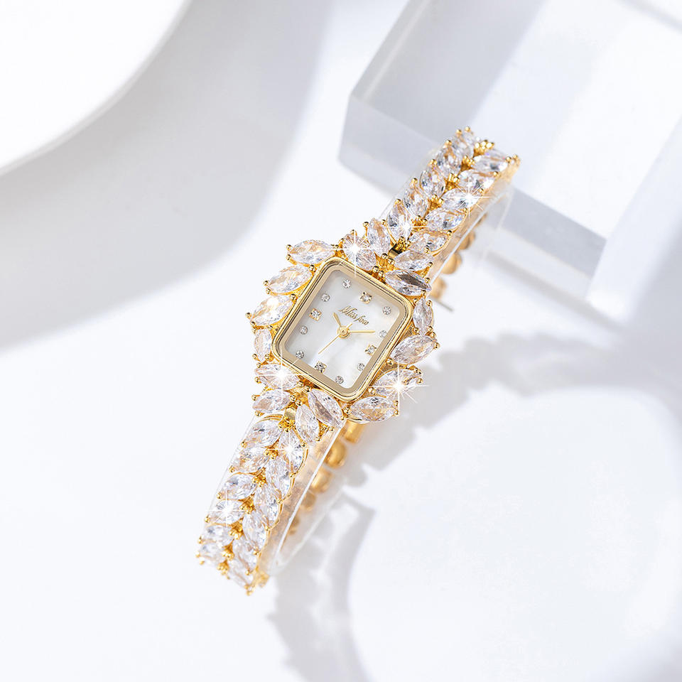 Luxury Ladies Wrist Watch Full Crystal Set Diamond Bracelet Jewelry Glass Dial Window Alloy Band Buckle Fashionable Gift Women