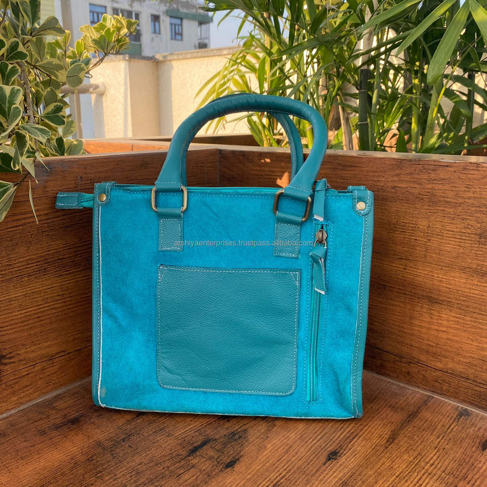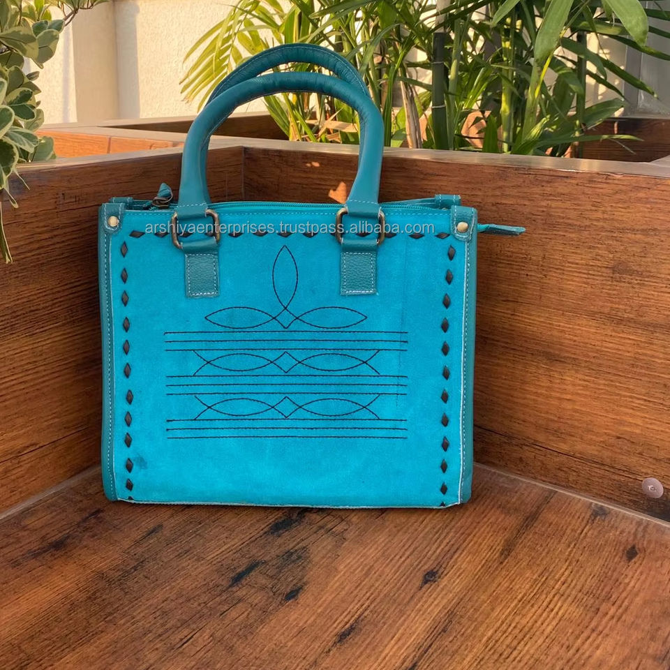 Luxury Large Capacity Boot Stitch Turquoise Suede Leather Concealed Carry Crossbody Tote Bag Genuine Leather Handbag for Women's