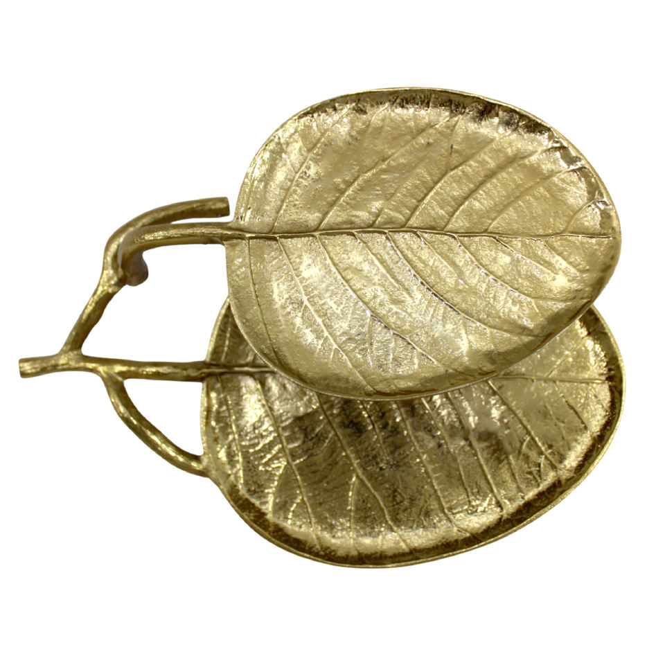 Luxury Large Decorative Gold Leaf 2 Tier Serving Centerpiece Tray Home Serving Plate or Tableware With Gold Shiny Nickel Finish