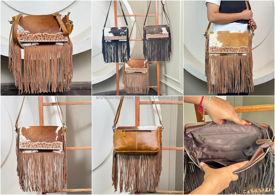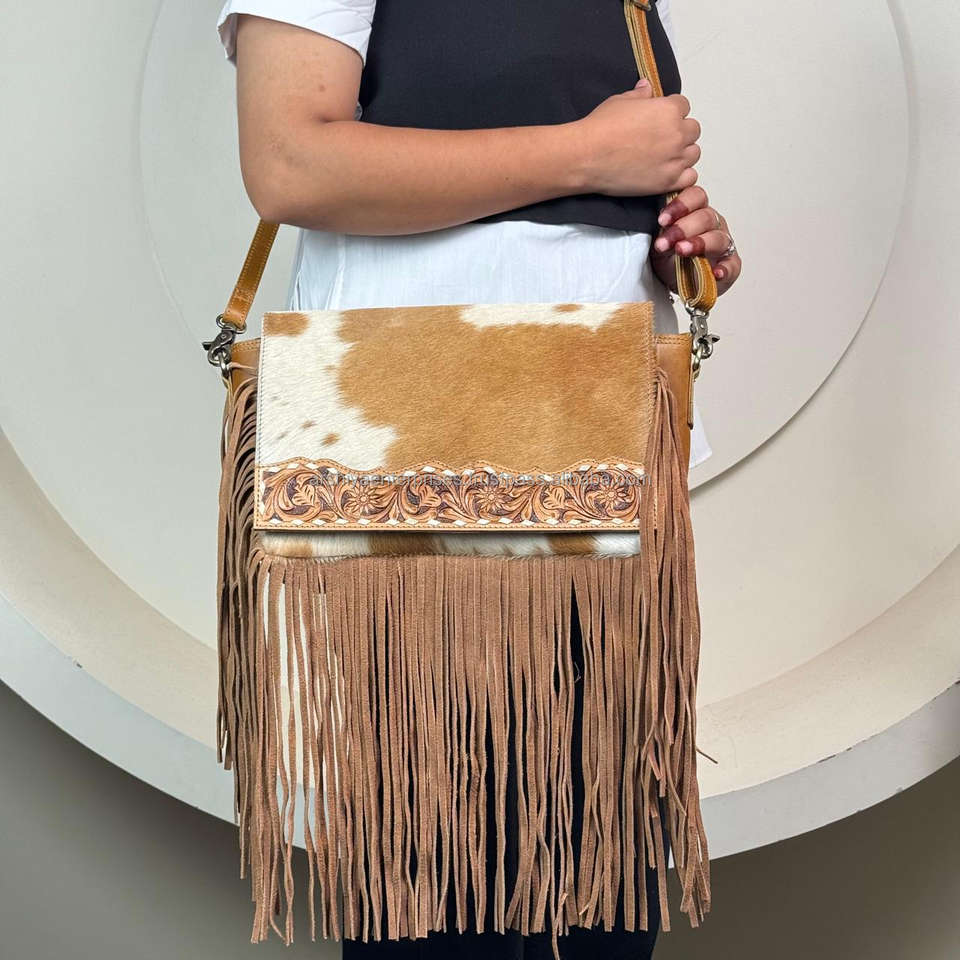 Product name:Hand Tooled Leather Fringe Crossbody Bag