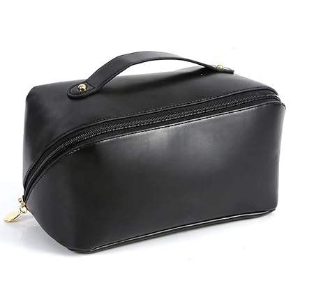 Luxury Leather Handled Eco-Friendly Multi-Purpose Cosmetic Bag Zipper Closure Large Capacity Makeup Bag for Women Travel Daily