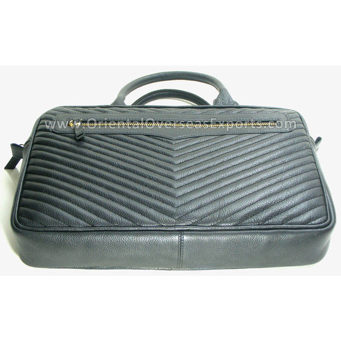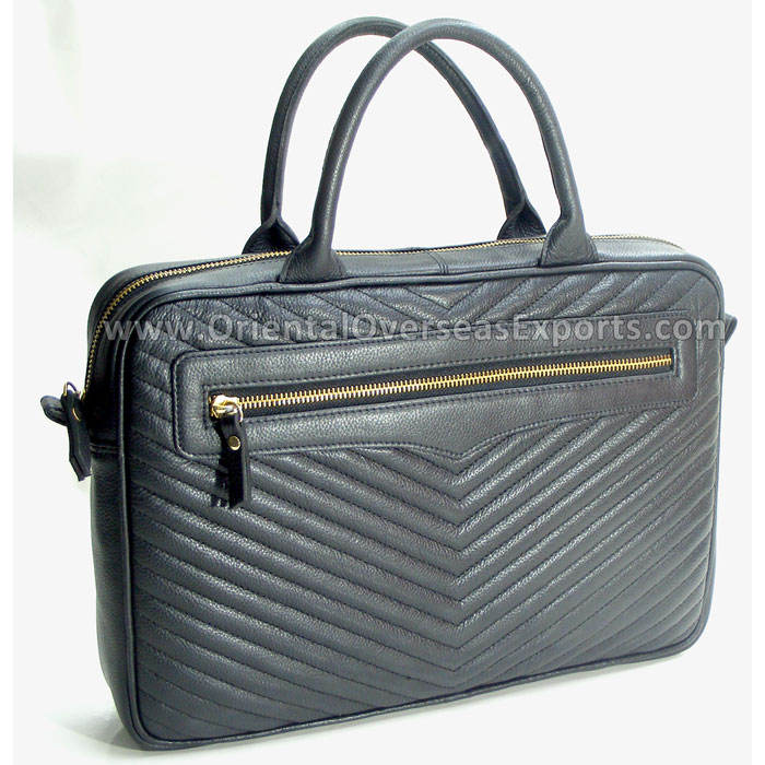 Luxury Leather Laptop Bags Covers with Handles Custom Logo Emboss Quilting Work Zipper Pocket Soft Padding Spacious Laptops Bags