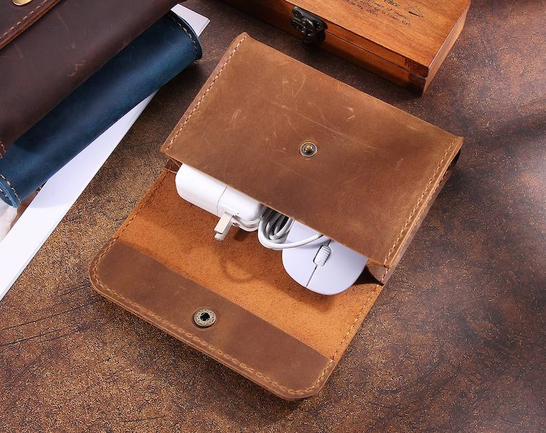 Luxury Leather Waterproof Shockproof Cable Organizer Travel Pouch for USB Chargers and Daily Use OEM Factory Supply LCO-0014