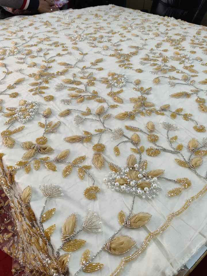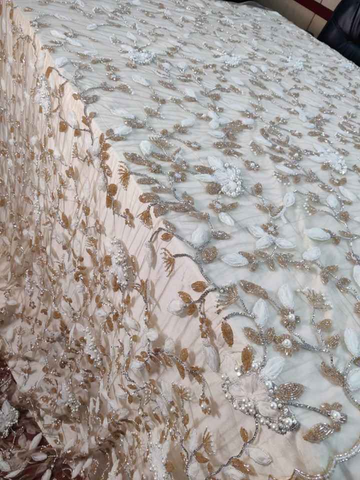 Luxury Light Blue Embroidered Lace Fabric with 3D Pink Flower Applique & Woven Beadwork for Accessories