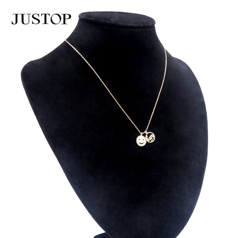 Luxury Trendy Long Round Smile Face Brass 18K Gold Plated Silver Link Chain Women Single Handmade Designer Minimalist Necklace