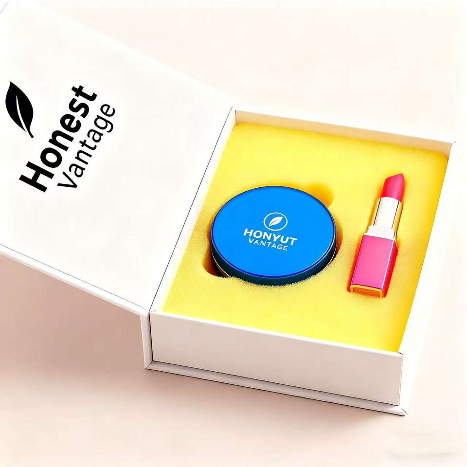 Luxury Magnetic Cosmetic Gift Box with Matt Lamination & Embossing Recyclable Foldable Flap Custom Makeup Lipstick Set Mirror