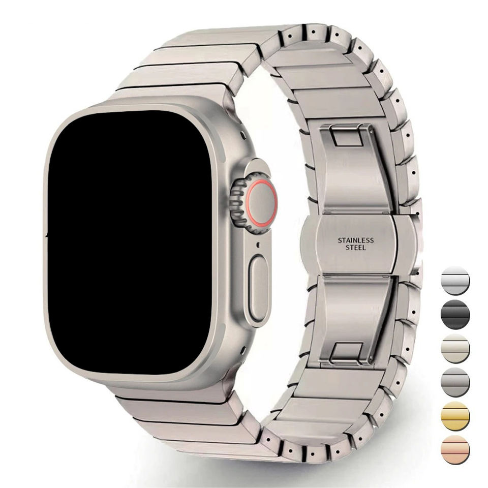 Luxury Man 46mm Watch Bands for apple Watch 10 ultra 2 49mm Band Stainless Steel Bamboo Butterfly Clasp Silver Gold Rose Gold