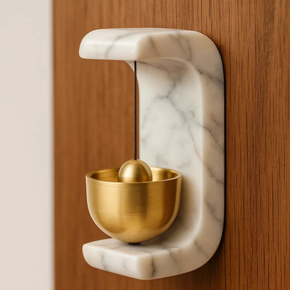 Luxury Marble Door Bell with Brass Chime Handmade Designer Hanging Bell for Home Decor Premium Welcome Sound Modern Door Accent