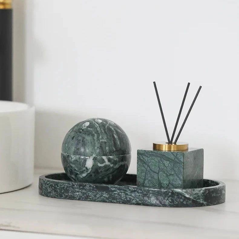 Luxury Marble Reed Diffuser Square Stone Aroma Diffuser with Gold Ring Premium Home Fragrance Decor Elegant Essential Oil Diffus