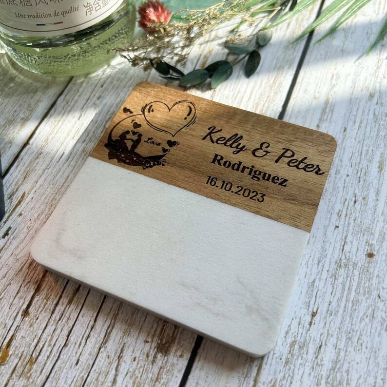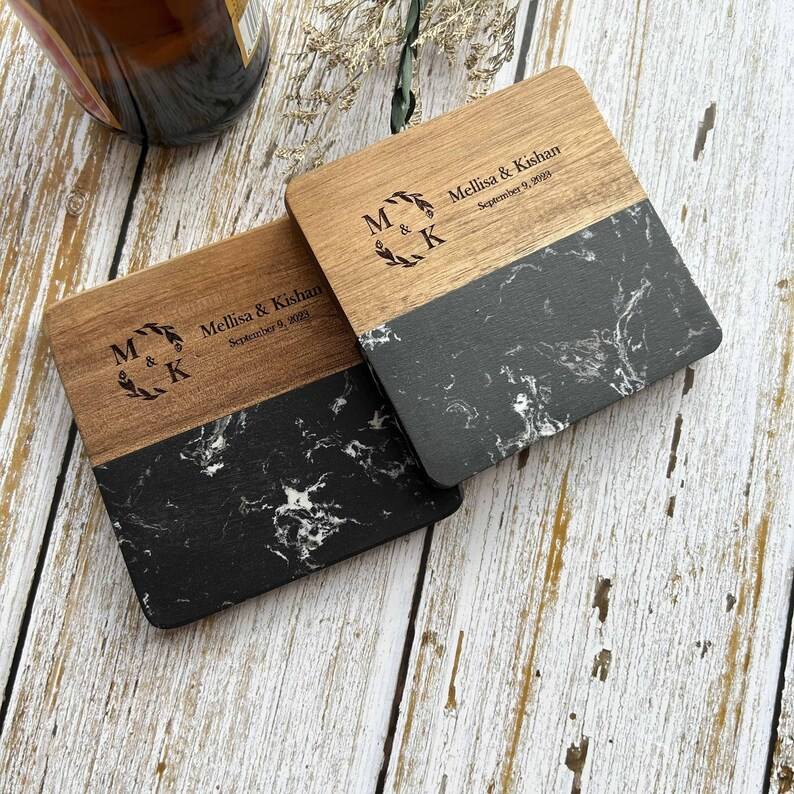 Luxury Durable Modern Marble Wooden Polished Drink Coasters Natural Stone Coaster Set for Coffee Tea Wine Glass Wedding Favors