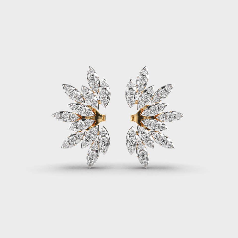 Luxury Marquise Cut Diamond Leaf Cluster Stud Earrings in 18K Rose / Yellow / White Gold | Custom Fine Jewelry Manufacturer