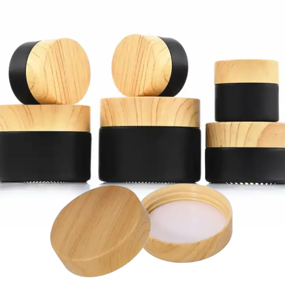 Luxury Matte Black Bamboo Cosmetics Packaging Containers Frosted Plastic Cosmetic Jar with Bamboo Lid Manufacturer Vietnam