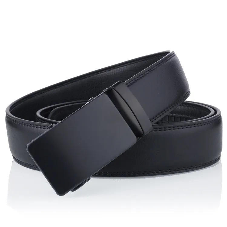 Luxury Matte Black Ratchet Belt Smooth Durable Leather Strap for Men, Casual & Business Slide Buckle Design
