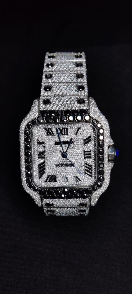 Luxury Mechanical Square Modern Street Black Iced Moissanite VVS Diamond Stainless Steel Watch-Elegant Vintage Hip Hop Fashion