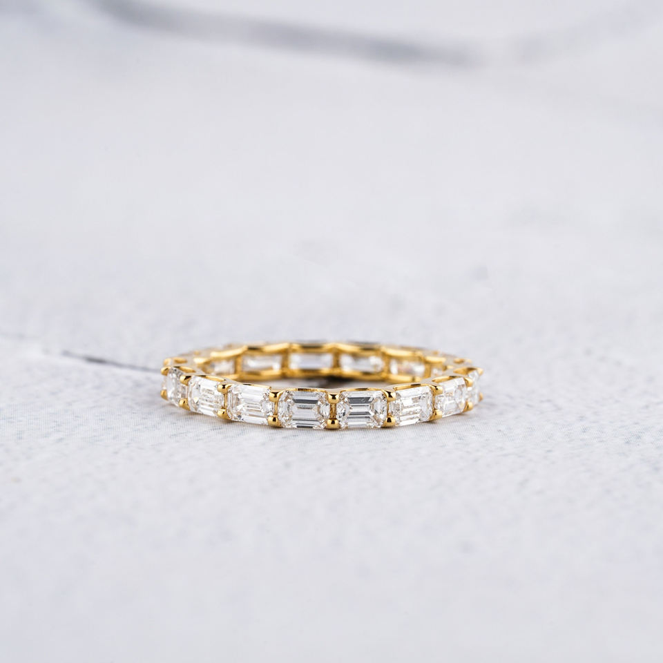 Luxury Men Eternity Ring in 14K Yellow Gold Iced Out Moissanite Emerald Wedding Band Unisex Statement Ring Anniversary Gift