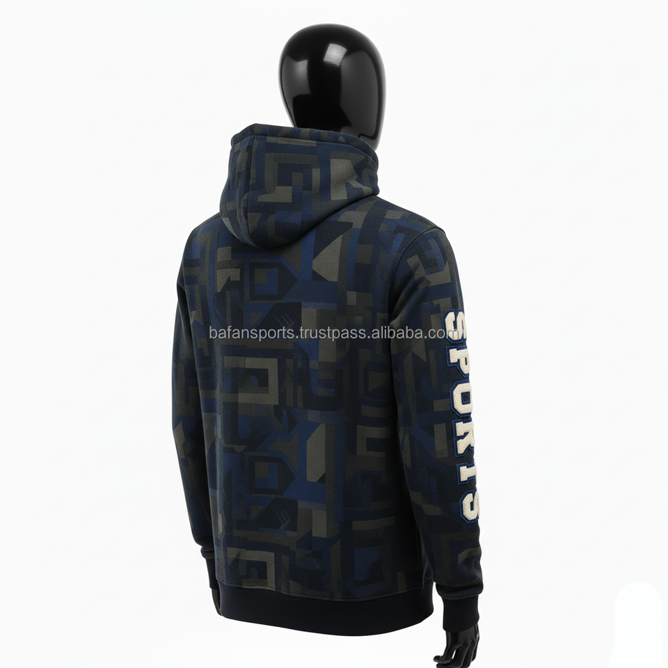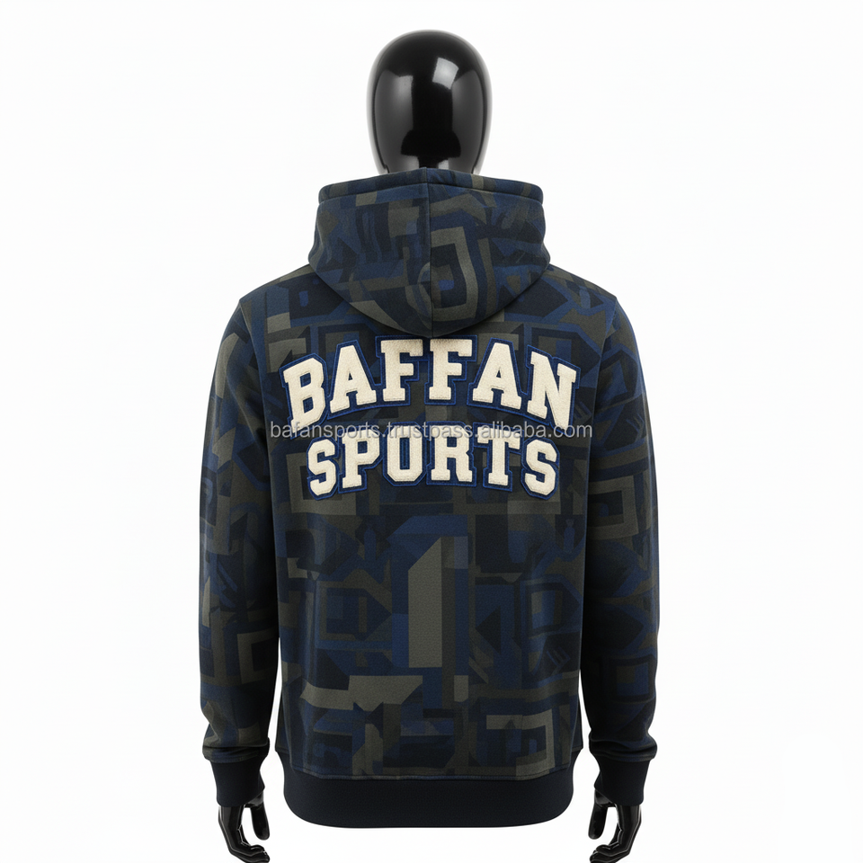 Luxury Men Hoodie 340 GSM Heavy Fleece Fabric Navy Blue Camo Style with Custom Embroidery and Chenille Logo basics Hoodie