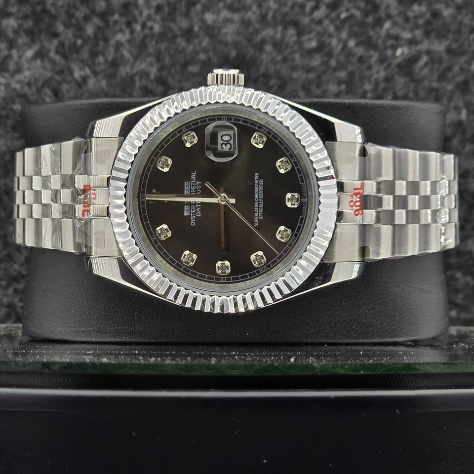 Luxury Men Watch Stainless Steel Automatic Mechanical Brown Dial Diamond Markers Fluted Bezel Jubilee Business Wristwatch