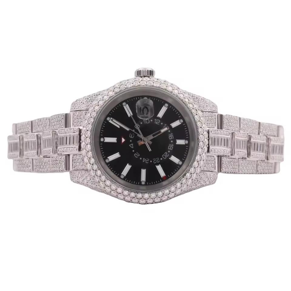 Luxury Men's 41 mm Sport Watch Iced Dial Big Moissanite Diamonds Custom Logo Stainless Steel Case Quartz Hip Hop Collection