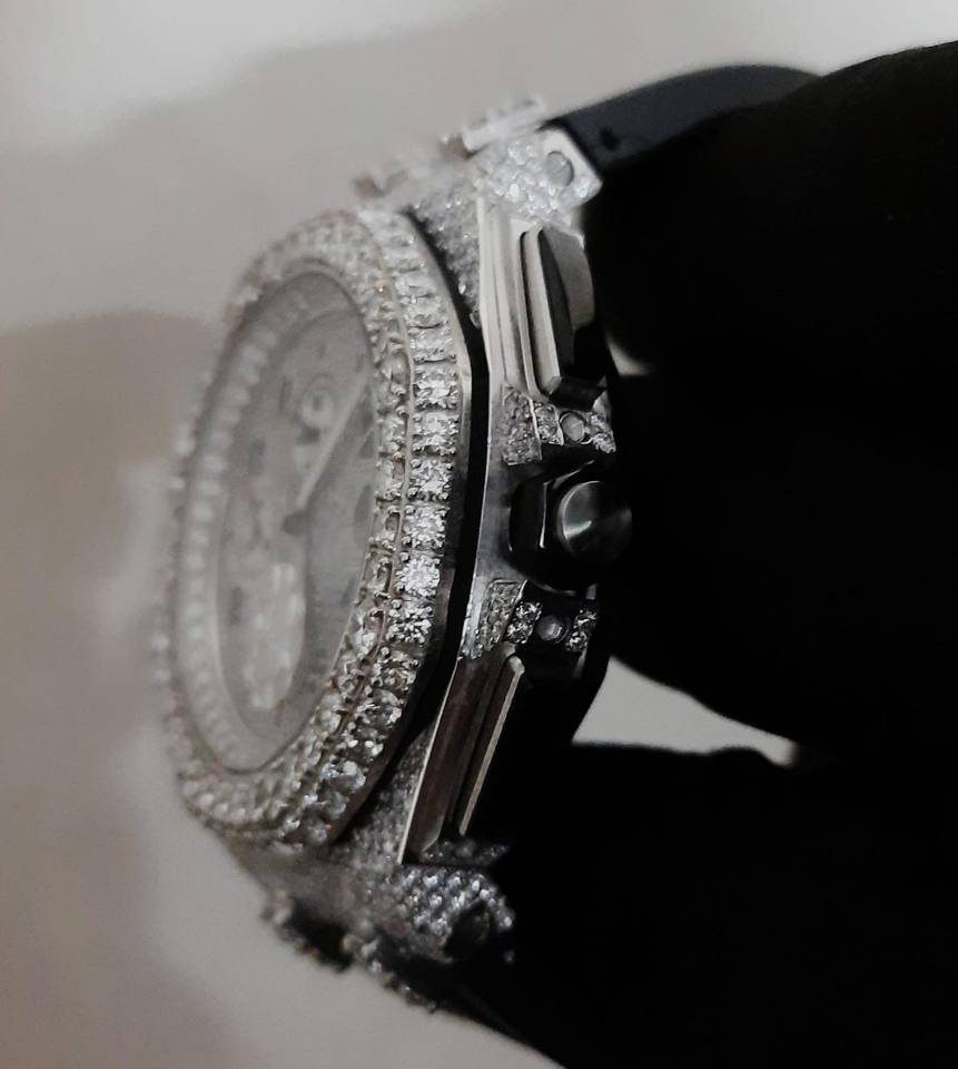 Luxury Men's Business Antique Diamond Analog Watch Quartz Movement Stainless Steel Case VVS Moissanite Rubber Band Iced Fashion