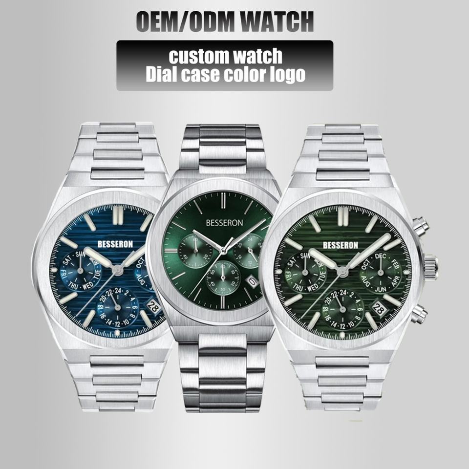 Luxury Men's Custom Chronograph Quartz Wristwatch 316 Stainless Steel Luminous Pointer Hardlex Crystal 42mm 5BAR Water