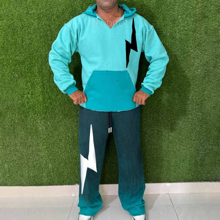Luxury Men's High Street Tracksuits Set Thick Cotton Hoodie Straight Wide Leg Sweatpants Custom Logo 220gsm Plus Size Thermal