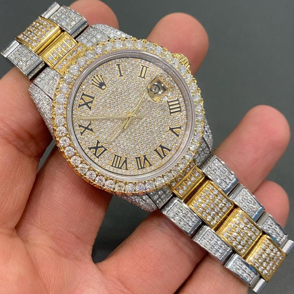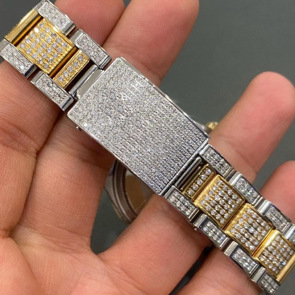 Luxury Men's Iced Watch Moissanite Brilliant Diamond Rectangle Steel Case Mechanical ETA Movement Bracelet Dial Band Box Packing
