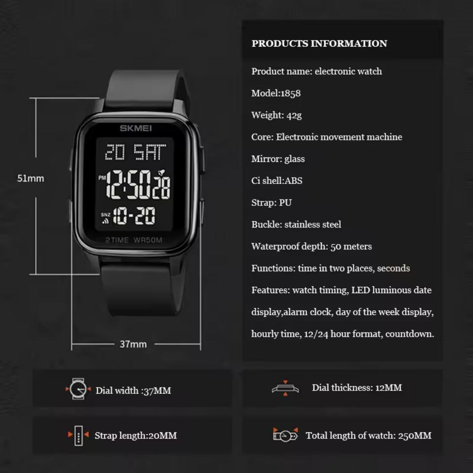 Luxury Men's & Ladies' Black Sports Digital Wrist Watch Square Case with Luminous Feature Multi-Functional Fashion Accessory