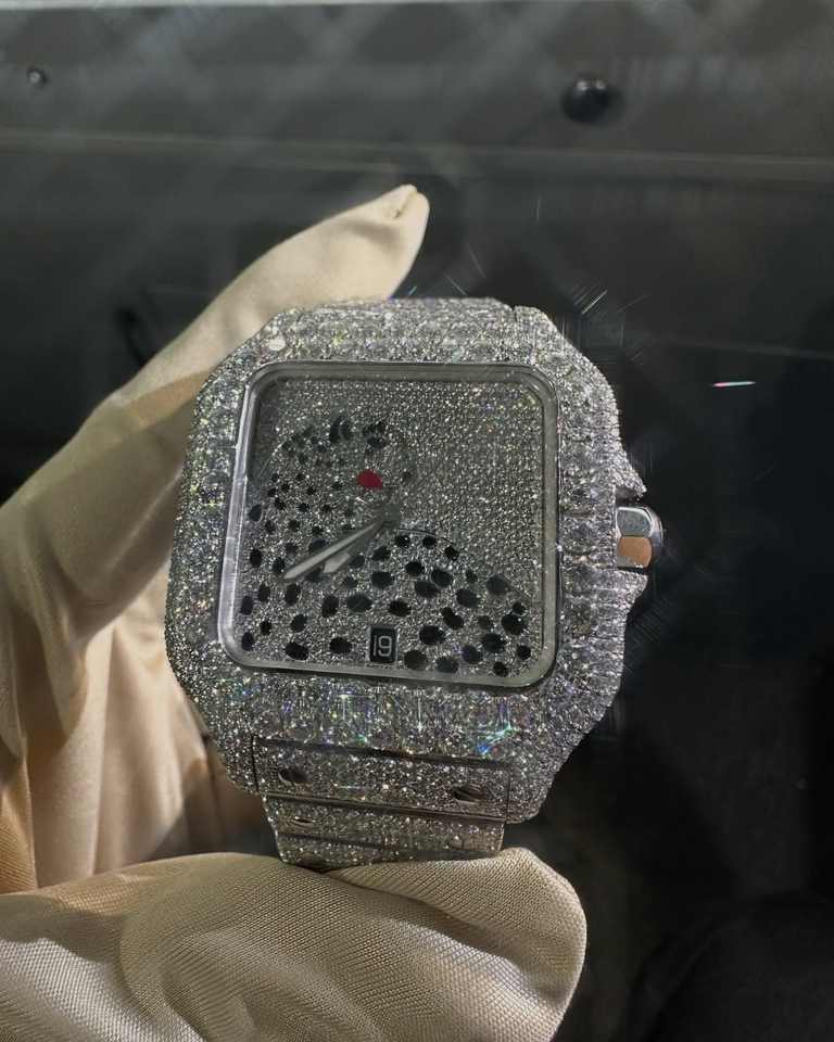 Luxury Men's Mechanical Movement Watch Iced Moissanite Brilliant Diamond Stainless Steel Case Crystal Dial Box Packing