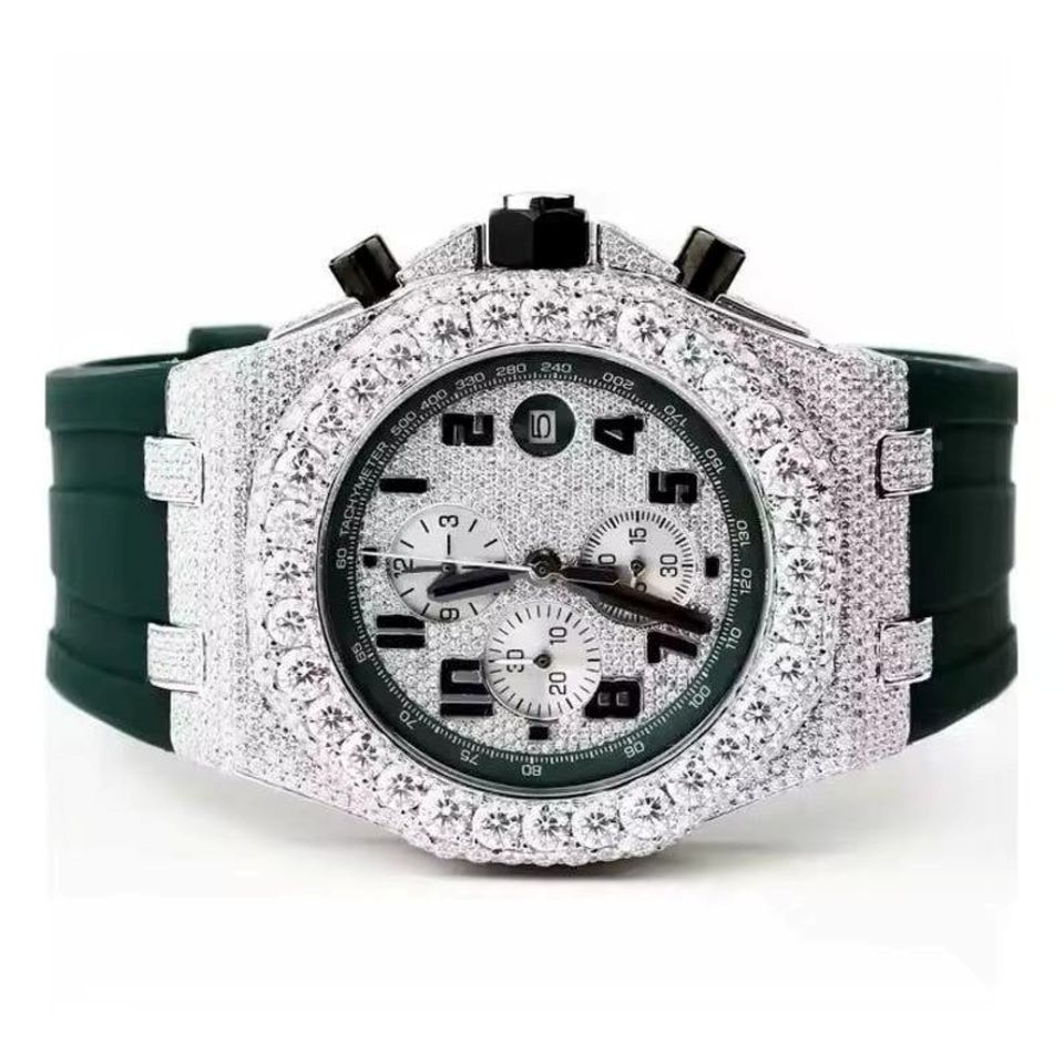 Luxury Men's Square Mechanical Watch VVS Moissanite Diamond Rubber Band Water Resistant Crystal Pointer Business Sports Hip Hop