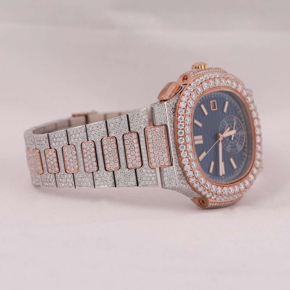 Luxury Men's Moissanite Diamond Watch Bling Hip Hop Style Display Steel Strap Perfect Birthday Gift Watch For Ocation