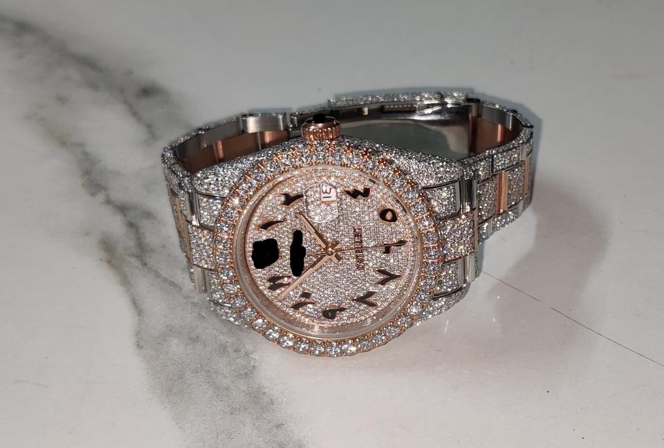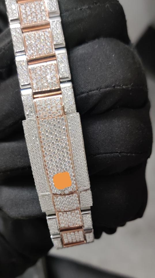 Luxury Men's Unisex Premium Quality Rose White Quartz Moissanite Diamond Two Tone Iced Mechanical Watches Hip Hop Style Glass