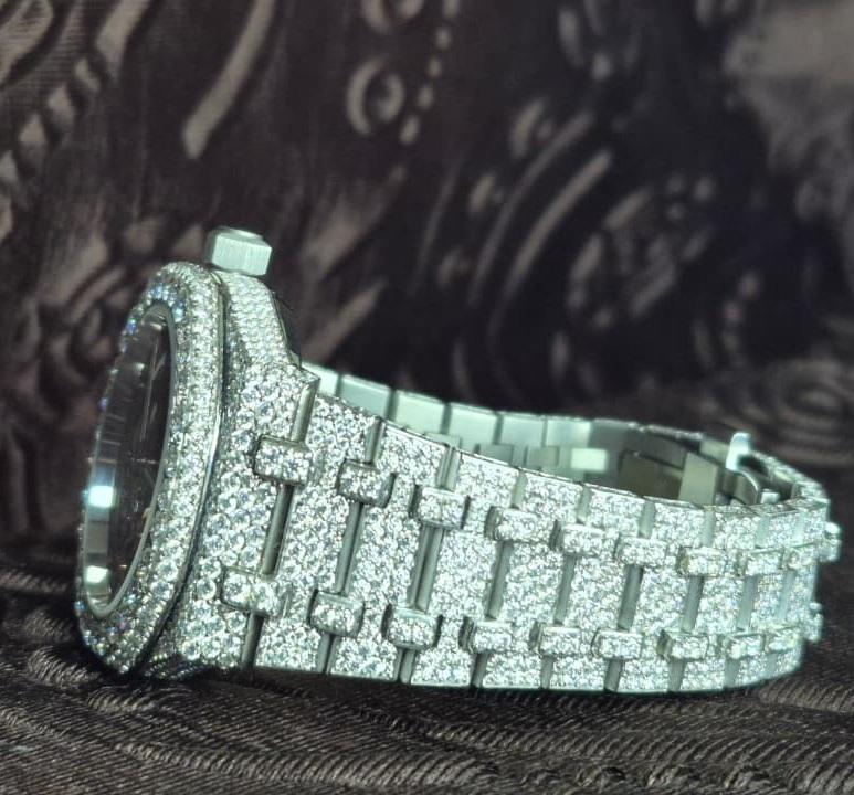 Luxury Men's Quartz Automatic Stainless Steel Wrist Watch Fully VVS1 White Moissanite Iced Diamond Hip Hop Iced Watches Business