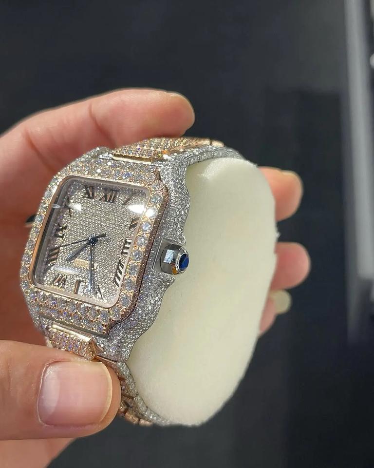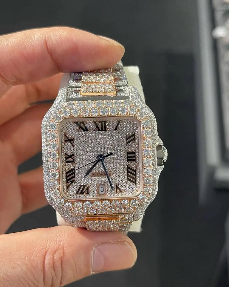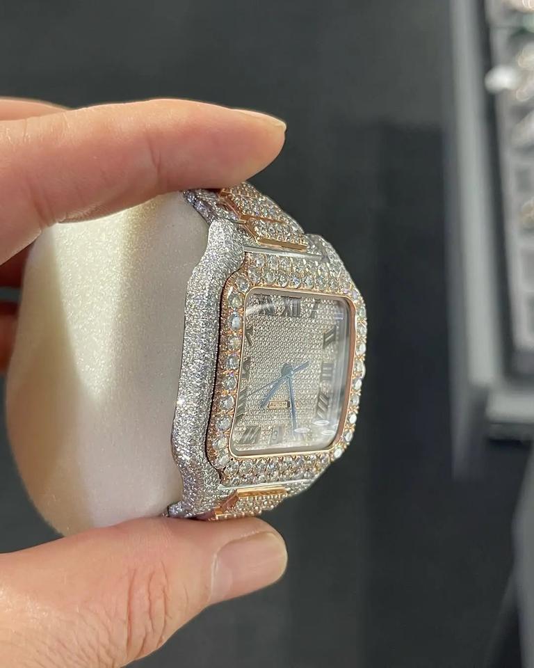 Luxury Men's Rectangle Automatic Wrist Watch White Moissanite Case Handcrafted Stainless Steel Antique Style for Fashion