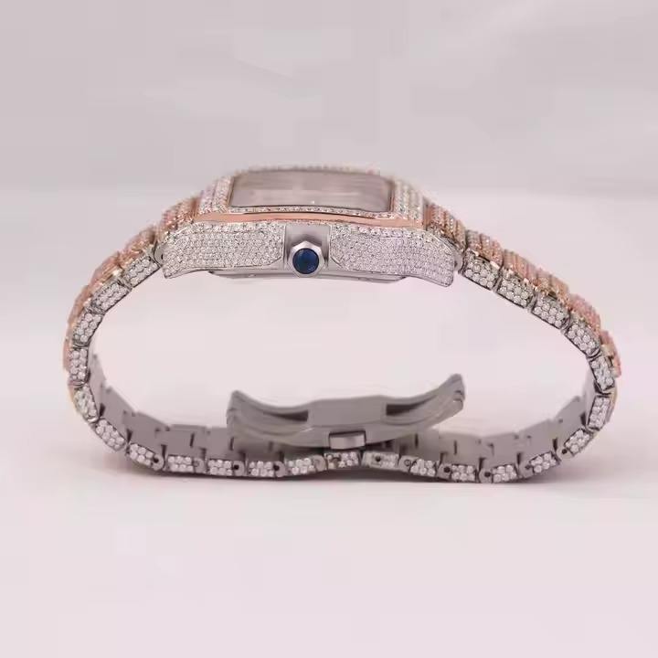 Luxury Men's Sport Watch 41 mm Iced Round Dial Moissanite Big Diamonds Custom Logo Hip Hop Collection Stainless Steel Watch