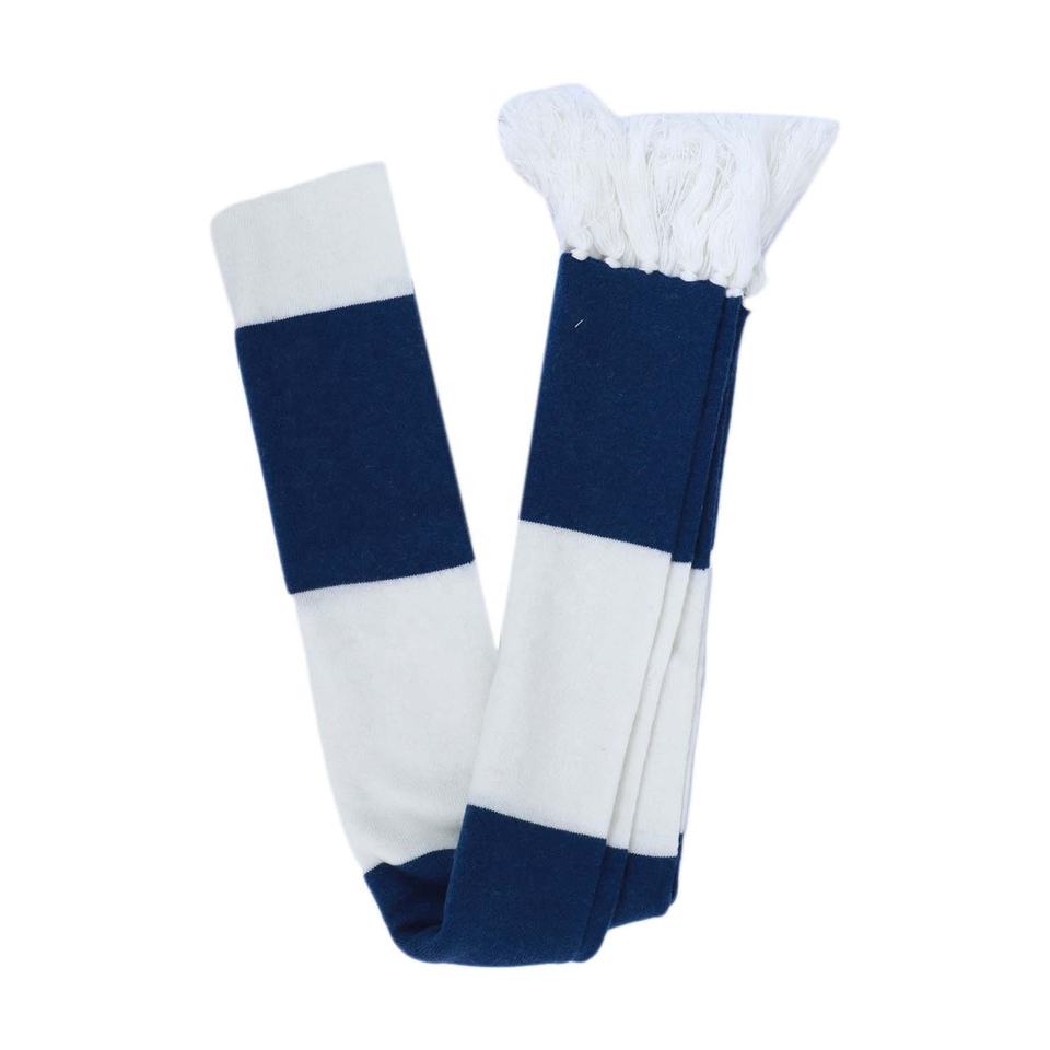 Luxury Men's/Women's Football Scarf Navy Blue Merino Wool White Stripes Hand Knitted New Design Printed Cashmere Club Shawl