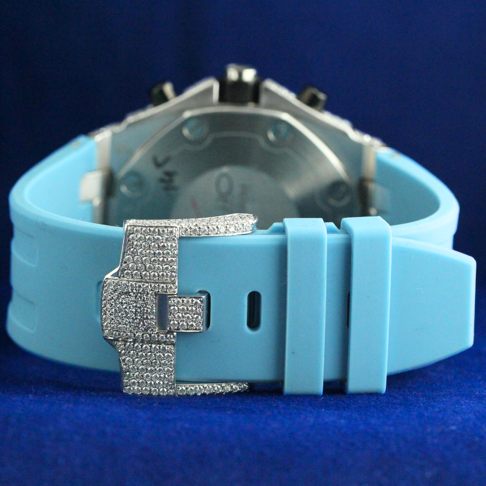 Luxury Men's Miyota Mechanical Watch Stainless Steel Case Half Iced Moissanite Diamond Sapphire Crystal Analog Customizable Blue