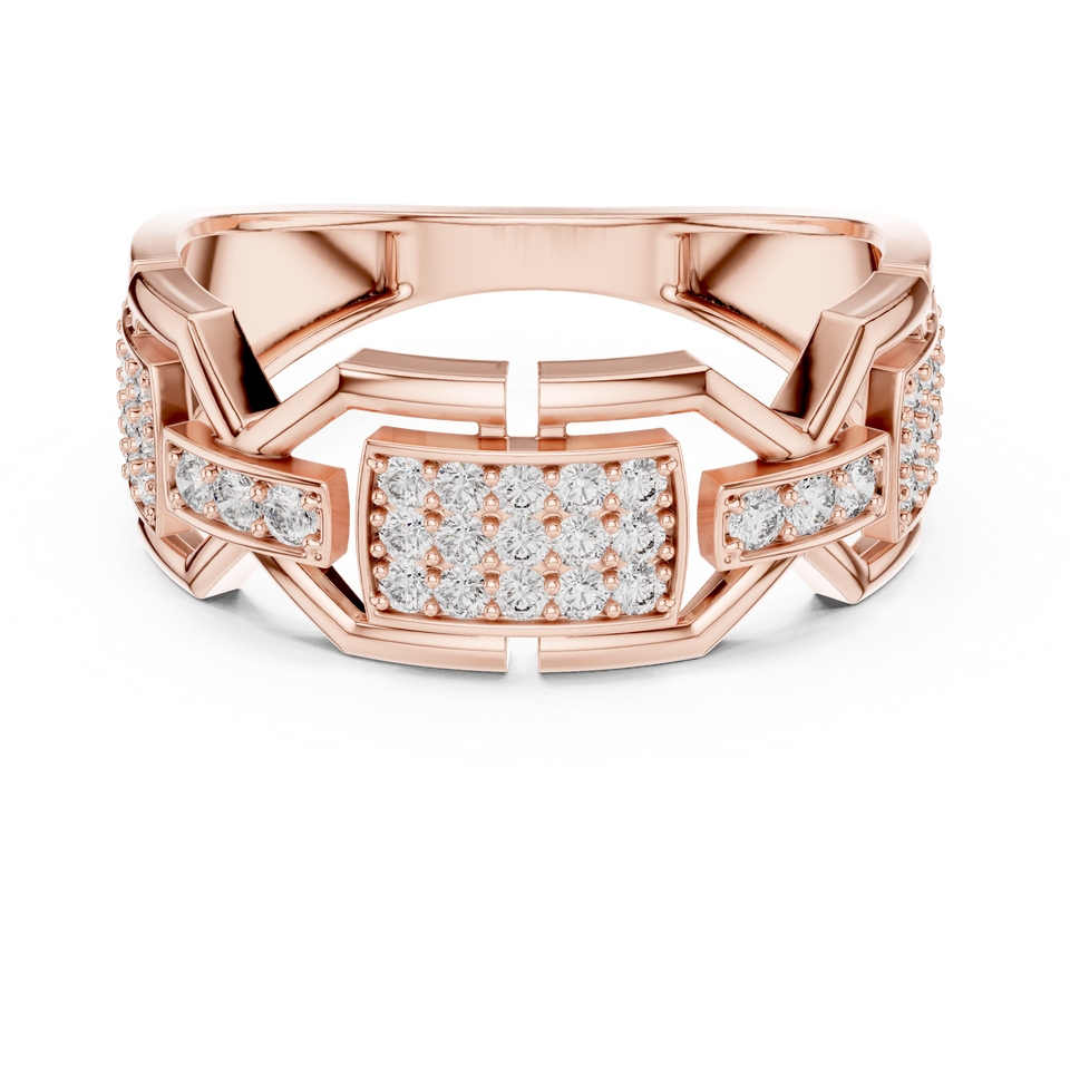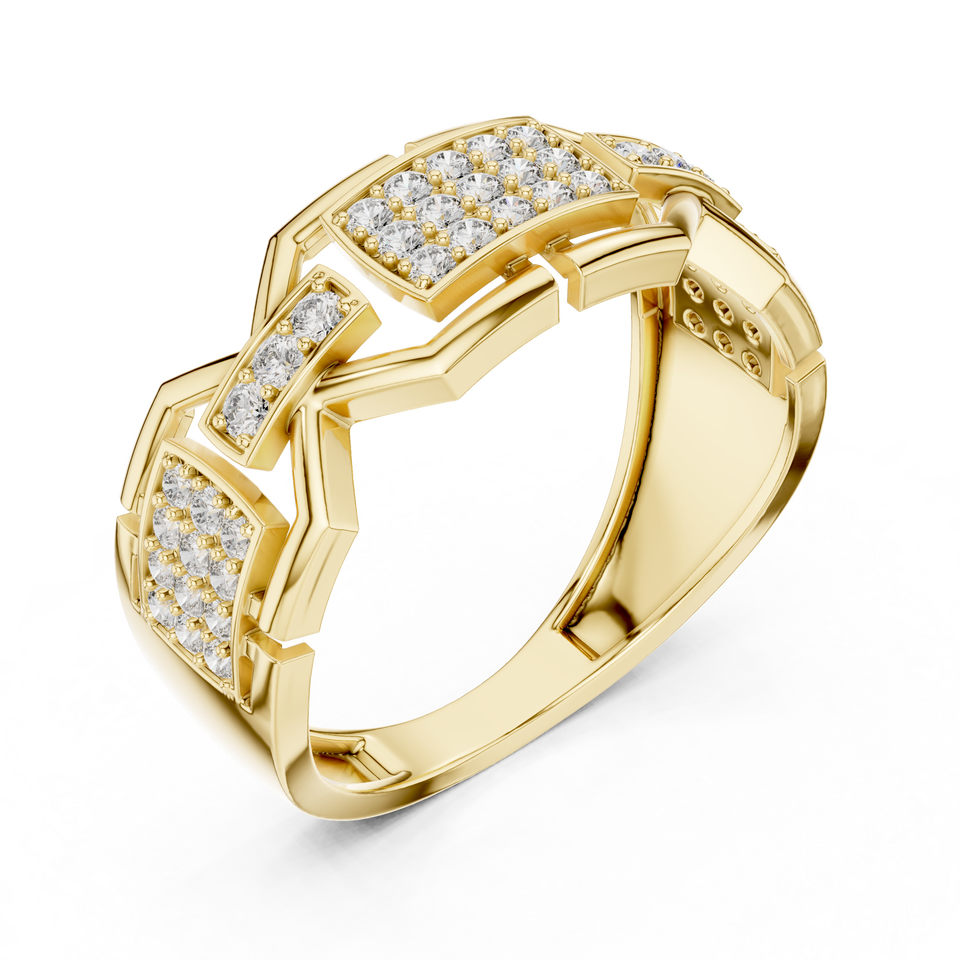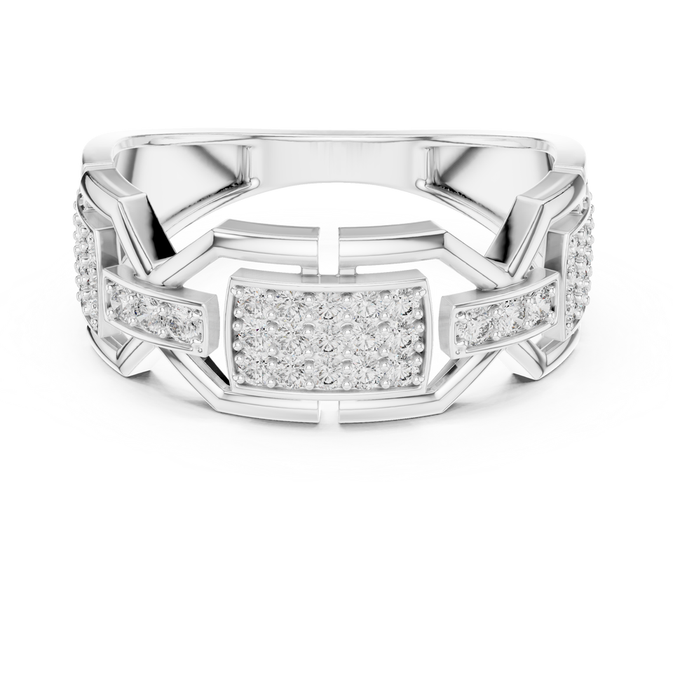 Luxury Mens Hip Hop Moissanite Sterling Silver Ring | Geometric Link Design | Micro Pave Setting | Iced Out Statement Ring