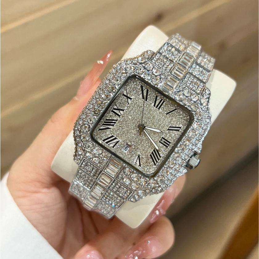 Luxury Mens/womens Unisex Crystal Watch Bling Iced-out Watch Oblong Silver/gold Wristwatch Analog Watch Diamond Quartz Fashion