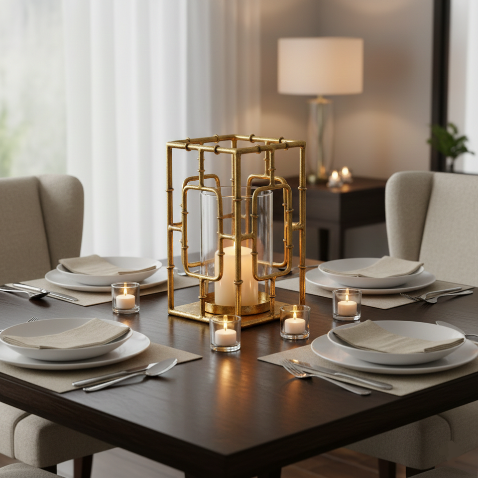 Luxury Metal Art Square Candle Lantern Decorative Gold Aluminum Glass Caged Hurricane Votive Holder Wedding Christmas Decoration