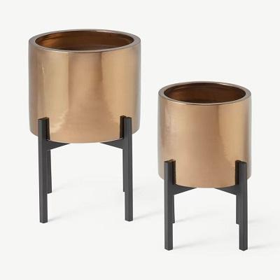 Luxury Metal Brass Finished Stand Upscale Accent for Minimalist Living Room and Garden Arrangements Flower Pots & Planters