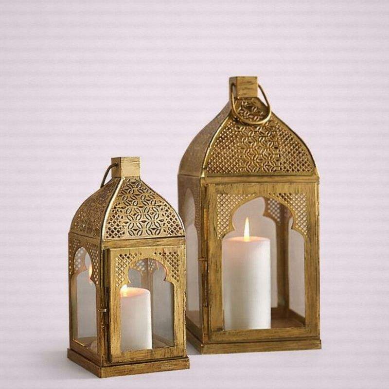Luxury Metal Moroccan Lantern Set with Intricate Cutwork Warm Candle Glow Elegant Festive Home Table Decor