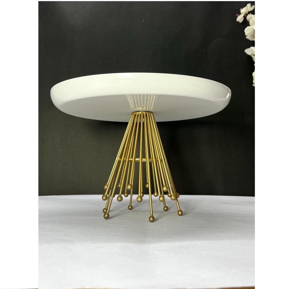 Luxury Metal Single Tier White Color Top with Golden Color Base Cake Stand for Party Decoration Home Decoration Use Stand