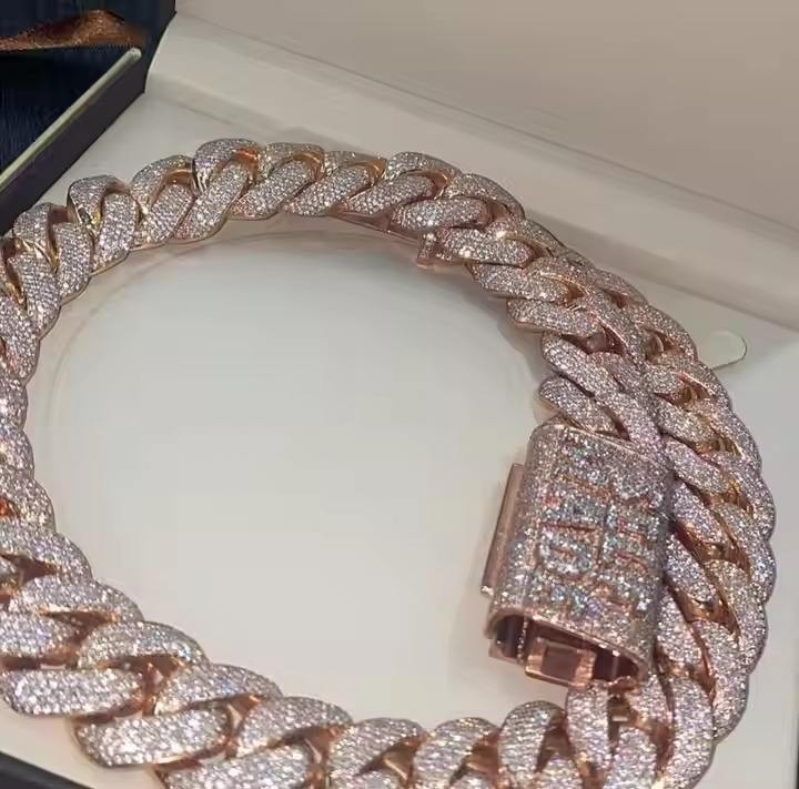 Luxury Miami Cuban Link Chain Fully Iced D VVS Studded Diamond Tester Check Moissanite Fashion Necklaces