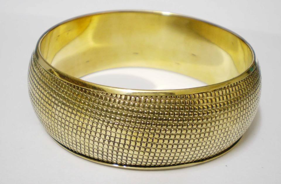 Luxury Micro Grid Textured Gold Plated Copper Bangle For Women Trendy Wide Statement Cuff Bracelet Elegant High Polish Metallic
