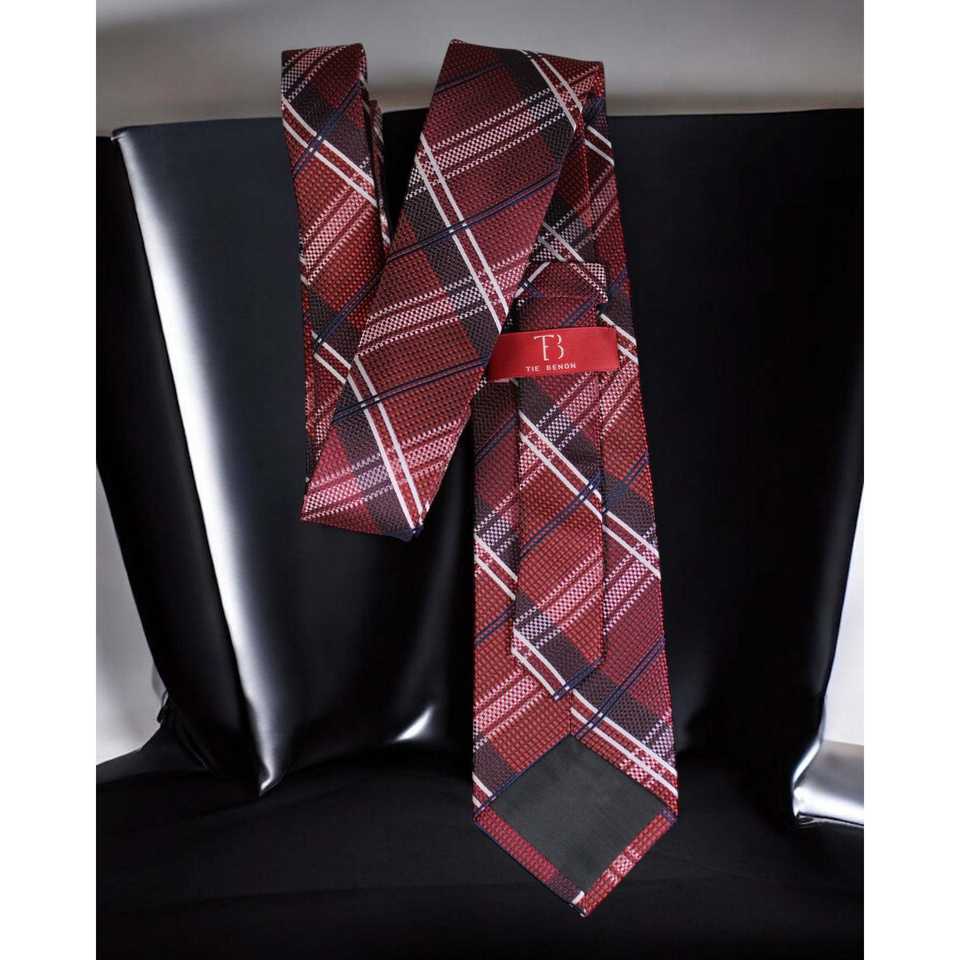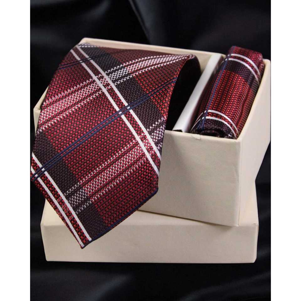 Luxury Microsilk Tie & Pocket Square Set in Maroon & Burgundy Plaid Navy & White Tartan Necktie Made of Silk