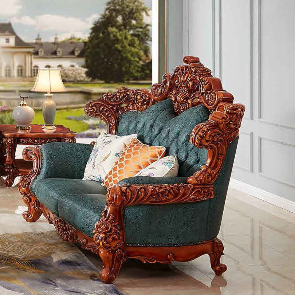 Luxury Midcentury Modern Solid Teak Wood Sofa Set with Hand Carved Frame Genuine Leather Upholstery for Hotel Villa Living Rooms