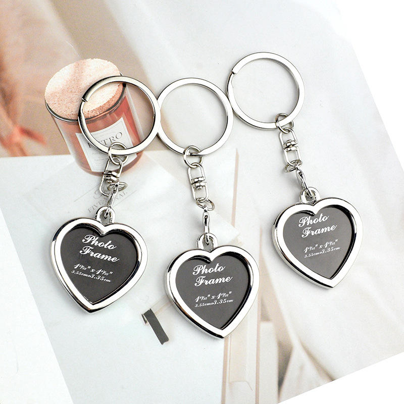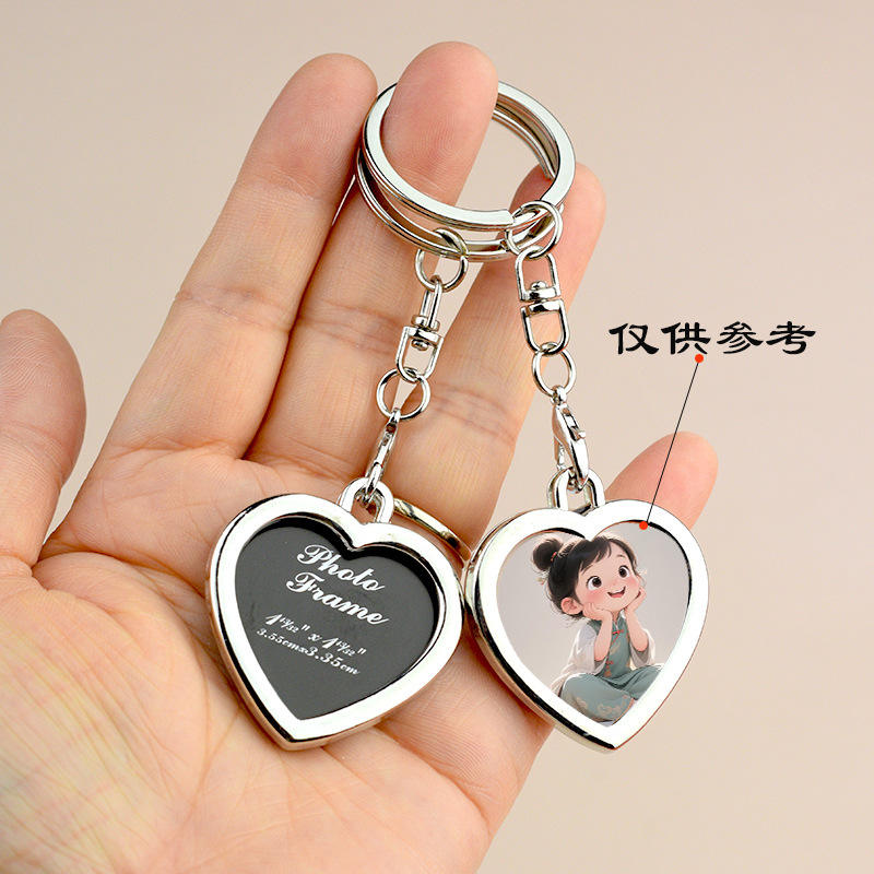 Luxury Mini Photo Frame Keychain with Heart Design Double-sided Metal Fashion Decorative Pendant Keychain