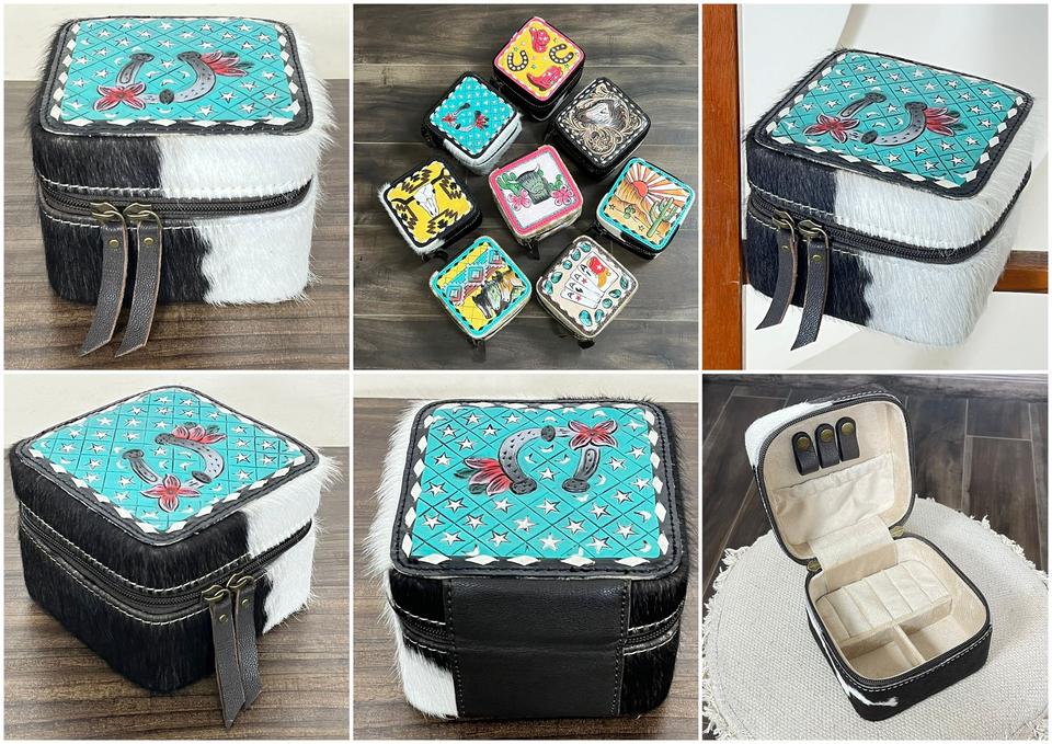 Hand Painted Cowhide Leather Jewelry Storage Box
