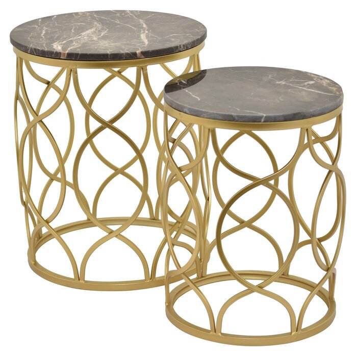 Luxury Minimal Metal Nesting Table Set with Textured Finish for High-End Living Room Styling